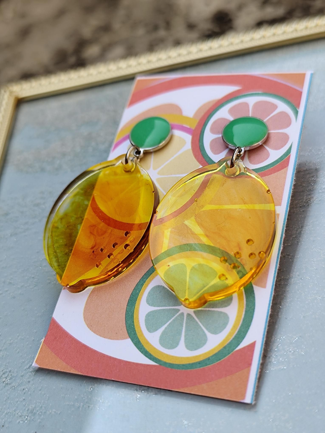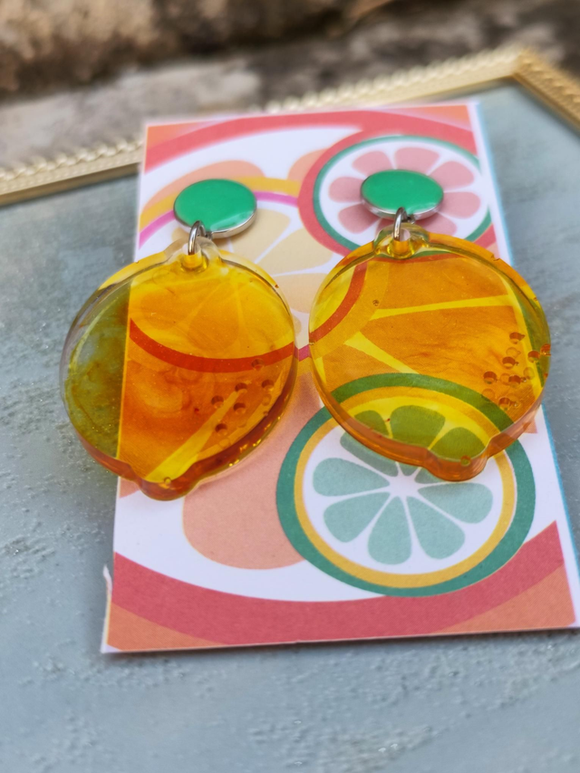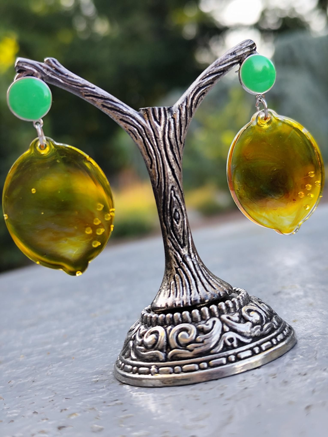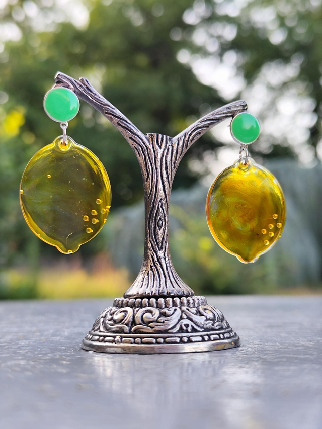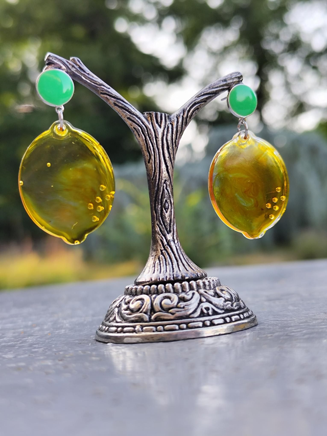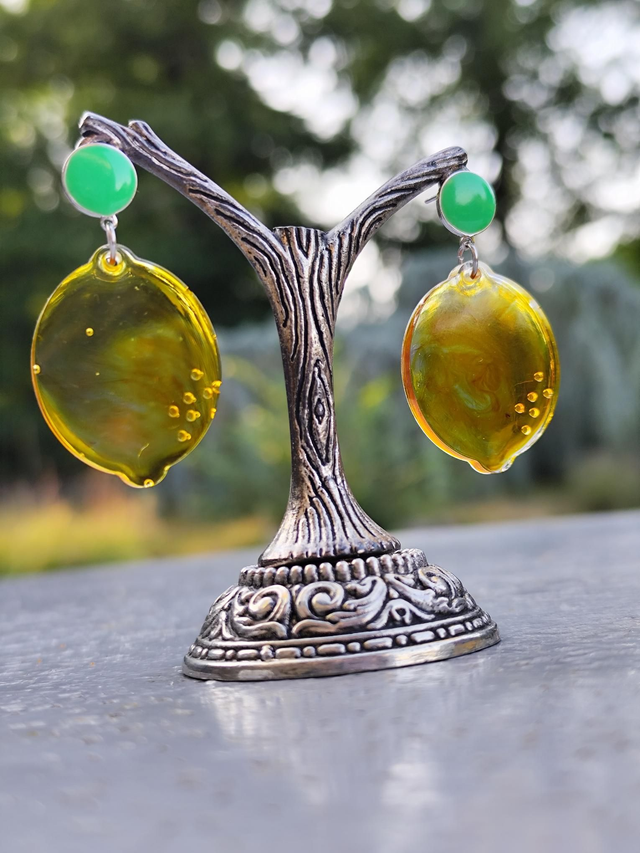 Des boucles d'oreilles en résine époxy handmade.